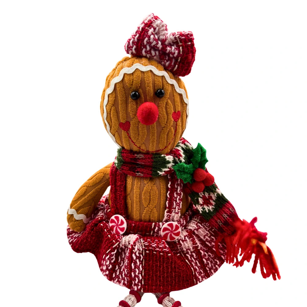 Lleva dulzura y encanto a tu decoración navideña con este adorable par de muñecos de jengibre. Con detalles tejidos, gorros festivos y piernas largas, son perfectos para dar un toque cálido y juguetón a tus espacios. ¡Una pareja encantadora que hará sonreír a todos!