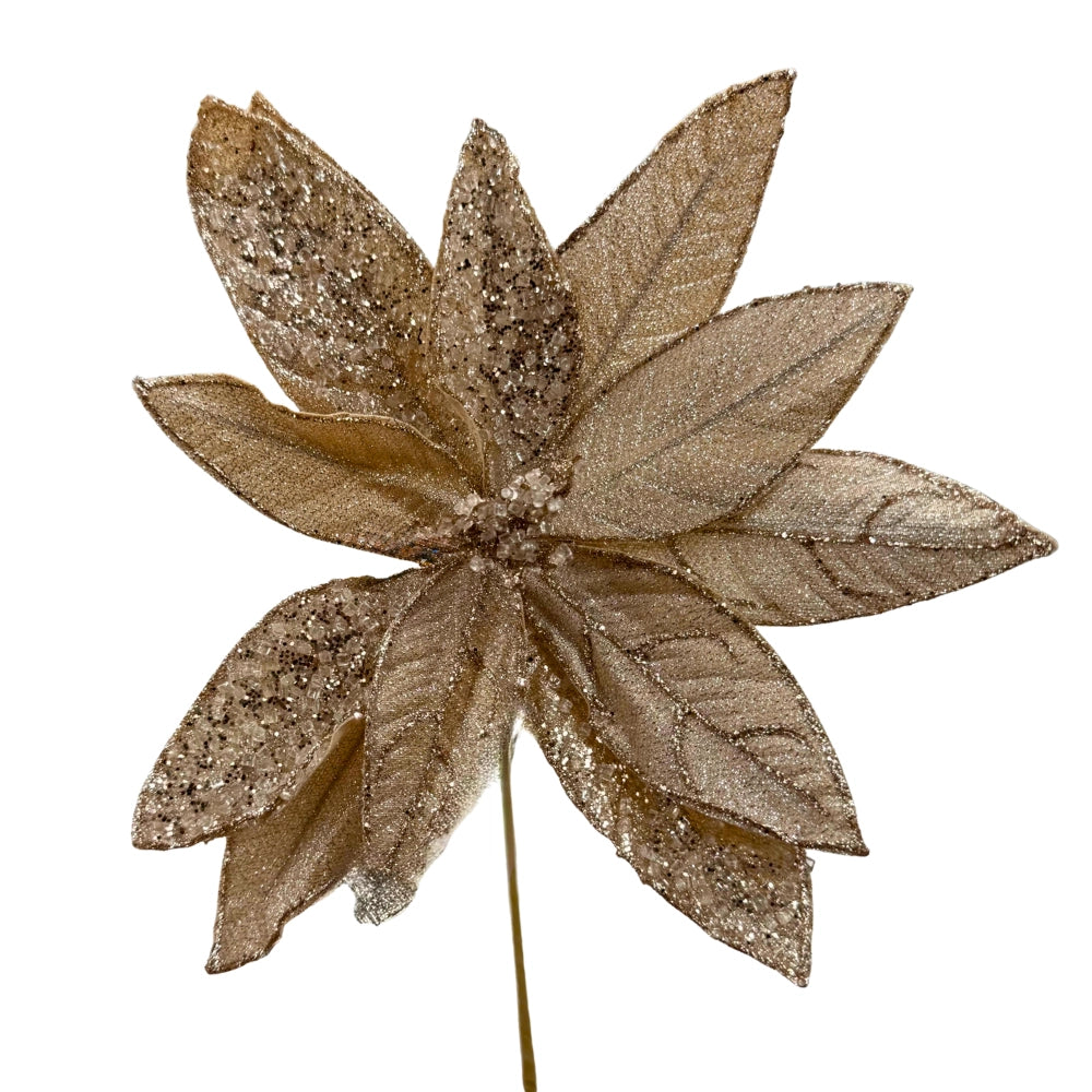 Flor decorativa champán con glitter para Navidad – elegante y brillante