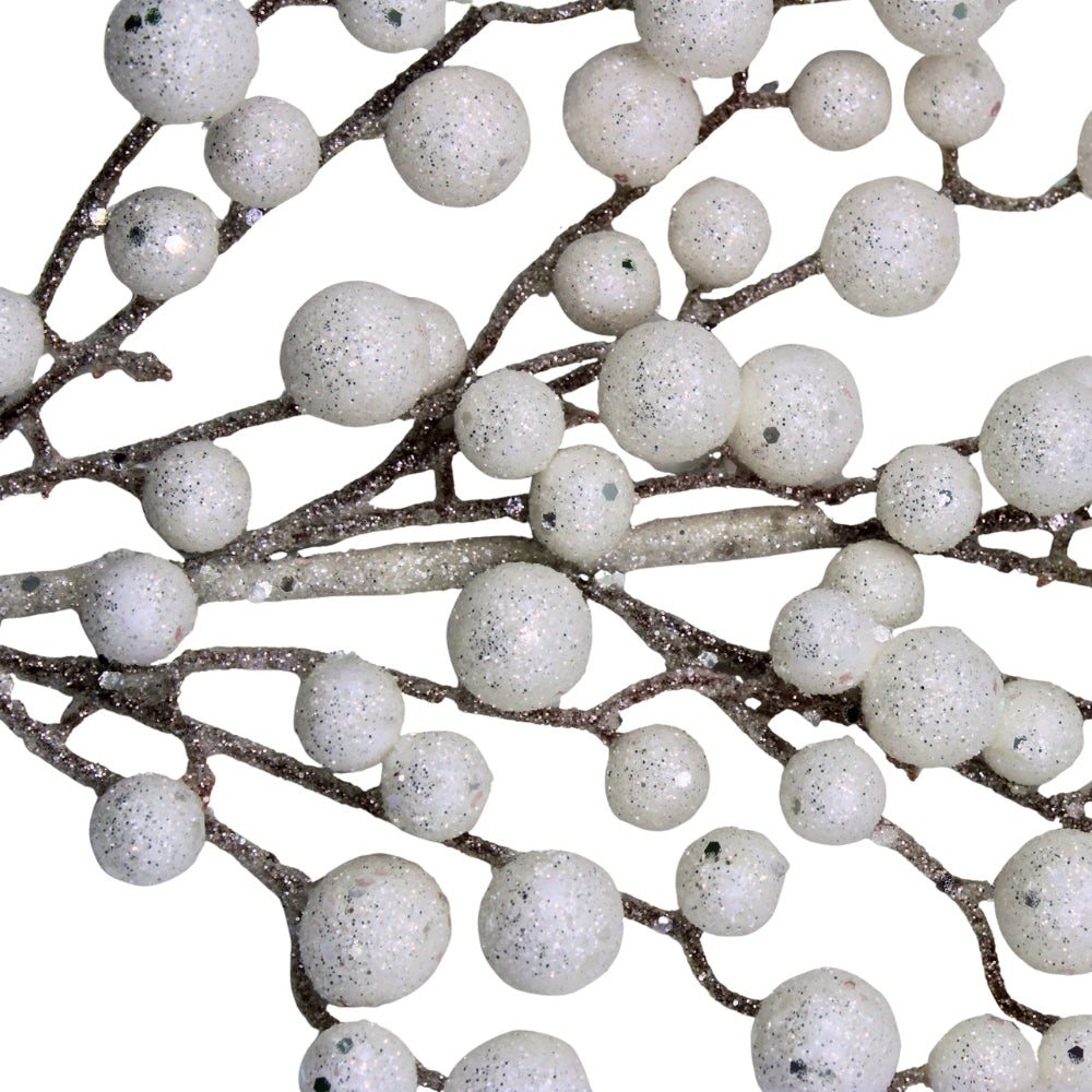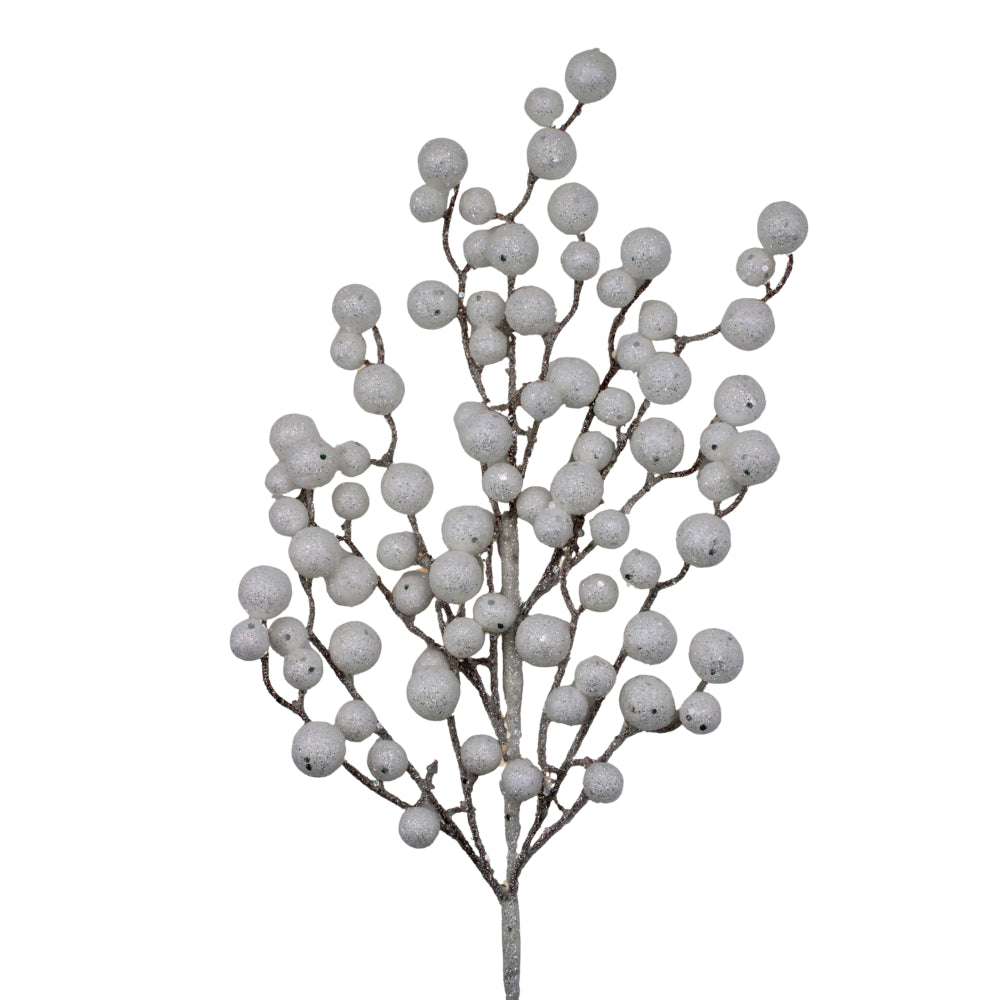 Aporta frescura y un brillo invernal a tu decoración con este pick berry blanco con glitter. Su diseño delicado evoca la magia de la nieve y es ideal para darle un aire sofisticado y festivo a tus arreglos. Haz que cada rincón de tu hogar brille con encanto navideño.