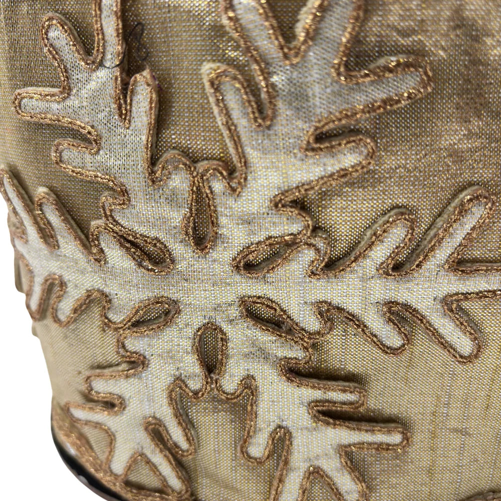 Este listón dorado con copos de nieve en relieve añade un toque de lujo y calidez a tus decoraciones navideñas. Su textura metálica y diseño detallado evocan la magia de un invierno dorado, perfecto para realzar árboles, coronas y arreglos con un estilo sofisticado y luminoso.
